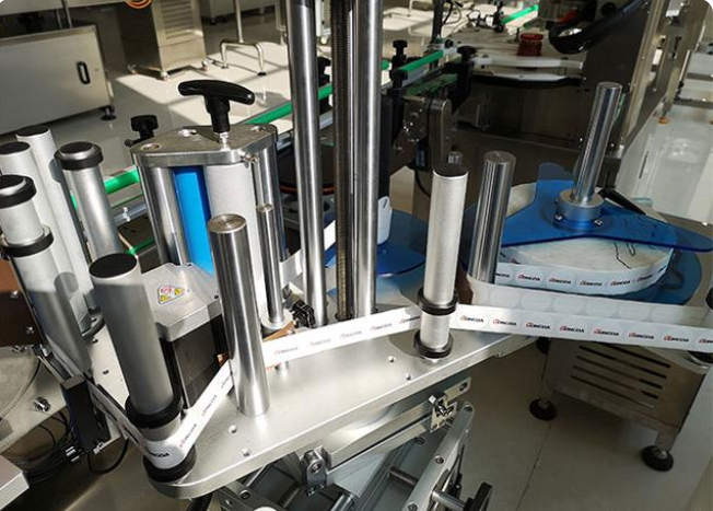 2、在多功能定位貼標機添加標簽時,需要保證標簽對齊。 首張標簽需保持在導叉之間0.1~0.2mm,夾指應將標簽均勻壓在邊緣。 叼紙牙打開后,滾輪海綿需要將標簽壓在瓶子上,并需要調整垂直和水平定位板,以確保標簽不會歪斜。